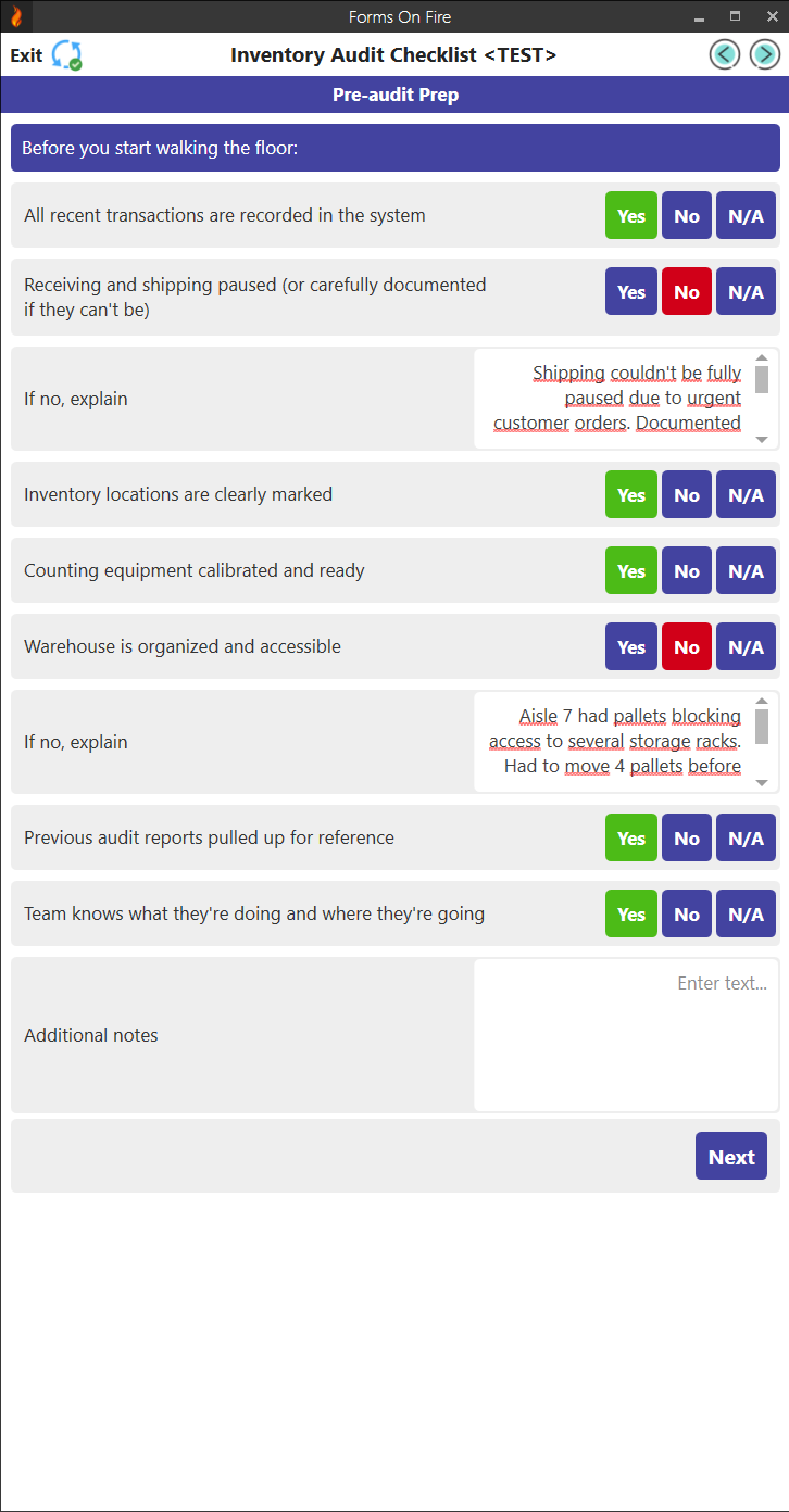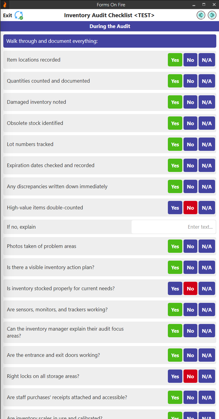 Forms On Fire is a no-code platform you can use to build simple digital forms or custom apps. For example, you can build a digital checklist for your teams to follow during the audit process — or a whole inventory app that tracks the location and status of your inventory.